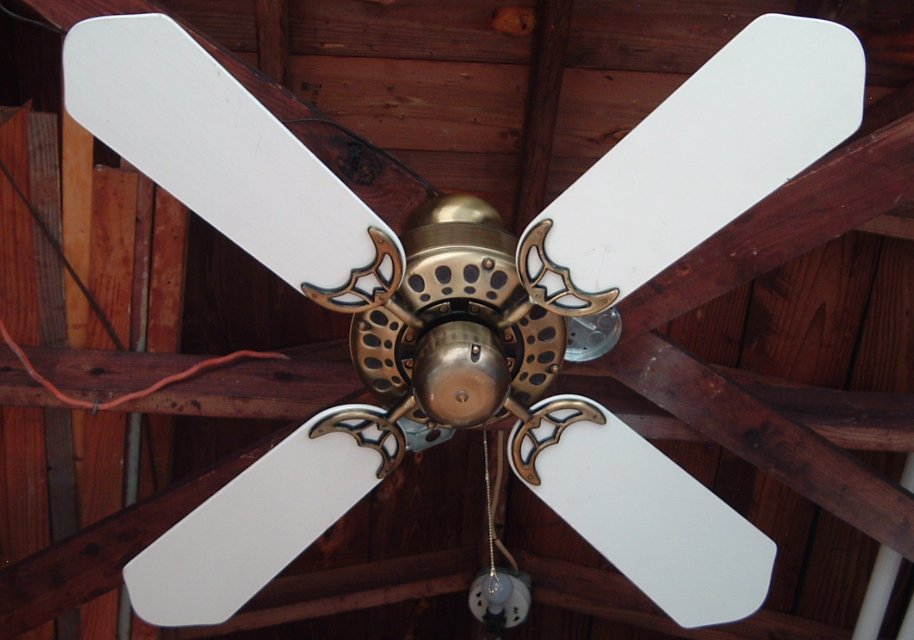 Antica / Codep ceiling fans from the early 1980s. Fan with the arch tip blades is a 42 inch model. Second fan with the pointed tip blades is a 40 inch ceiling fan. Has the Antica letters stamped into the metal of the inside part of the switch housing cap. Reason that Codep is also mentioned, is due to the fact Codep may have been affiliated with these fans, as some have said they've seen these with Codep lables on them also. These ceiling fans have a three speed pull switch, and forward/reverse switch. Also has a place in the switch housing to add another pull chain for a light kit. Double claw hook is used to mount these ceiling fans. Made in Hong Kong and are quite heavy. Neat fans! |