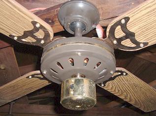 Caribbean Electric Co. spinner ceiling fan model NA 48, Made in Taiwan by the Caribbean Electric company, Sold by Scottys hardware store in Florida back in 1986. Fan is dated 4/1986. Has a three speed pull switch, and a forward/reverse switch. Ball and socket bracket is used to mount. Many other versions and styles of this fan were sold through various other hardware and department stores. A 1980s cheapo fan. |