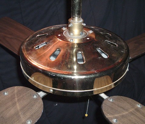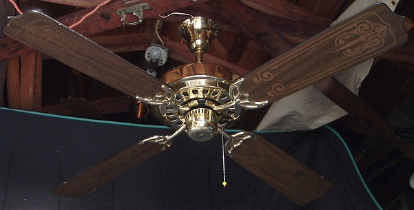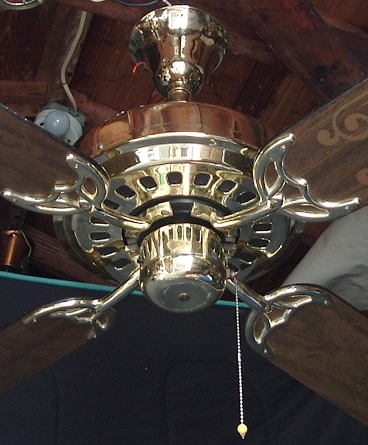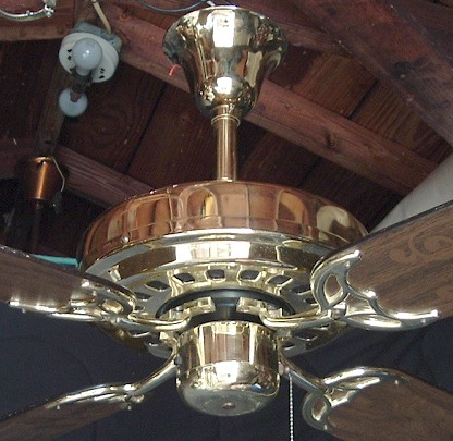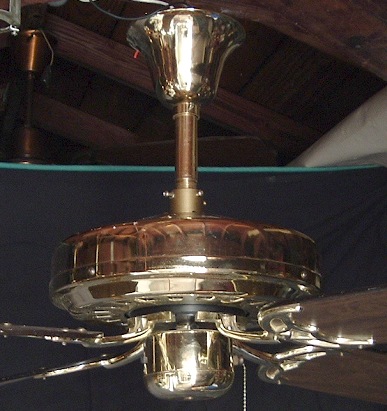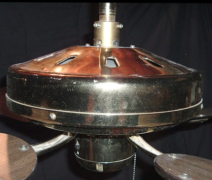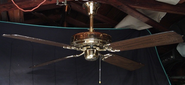 Classic Concepts Dynasty ceiling fan D-300-BB. Model number listed on the motor is D-300- 52ins-120v-60hz-10amp. Manufactured out of Ft. Lauderdale Florida. This fan is from the early to mid 1980s. These were called the "Dynasty", and were made in Hong Kong. Very heavy ceiling fan. Was offered in antique brass, bright brass, chrome, and other finishes. These were also offered in both three speed, and variable speed. This one has a three speed pull chain, and a forward, reverse/switch. J-Hook is used to mount this ceiling fan. Neat Fan!! |