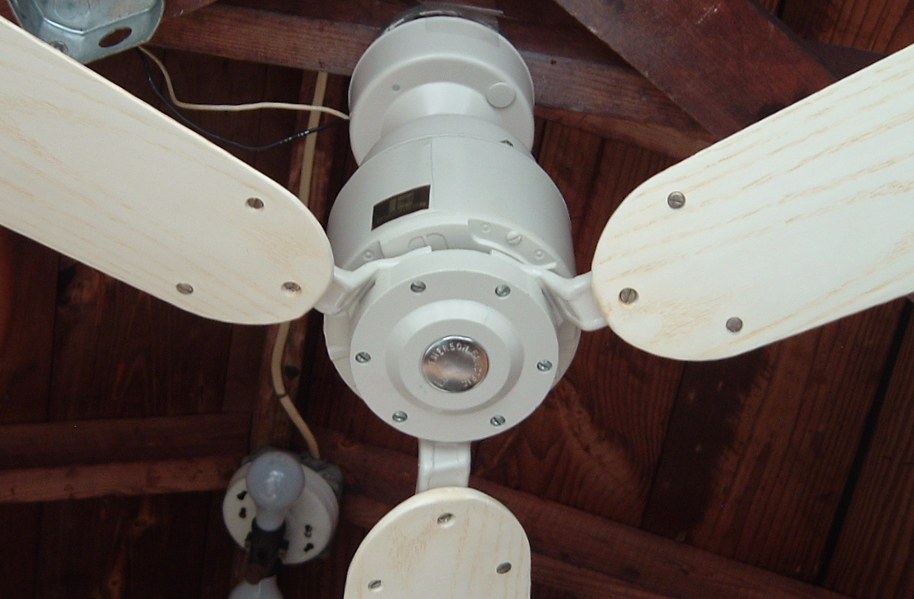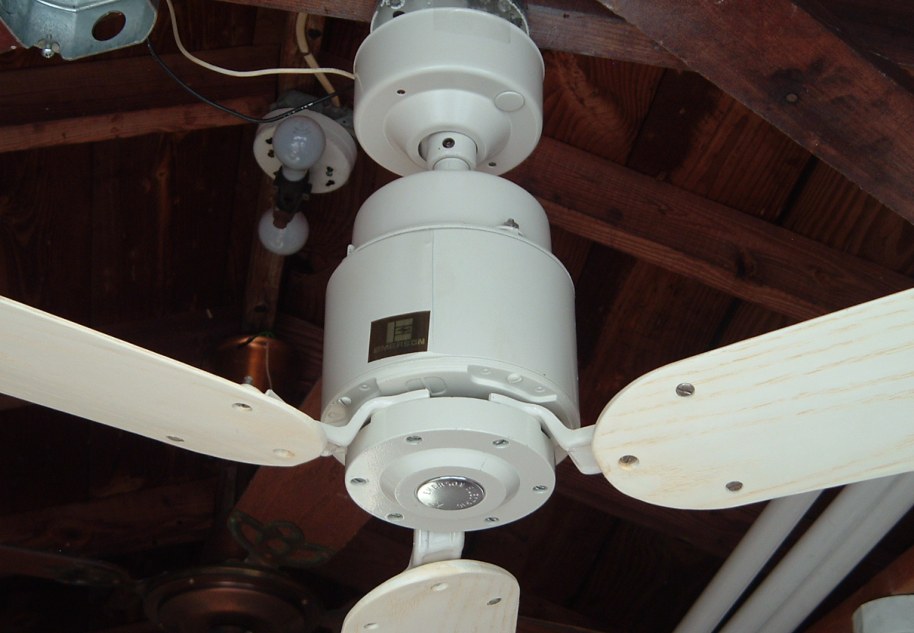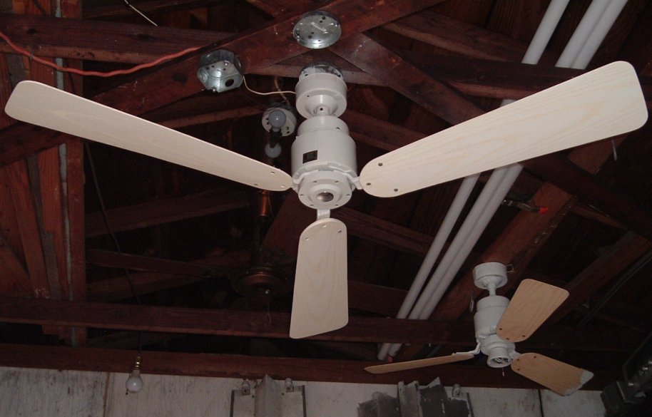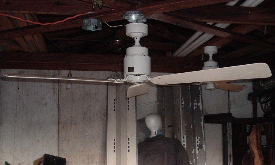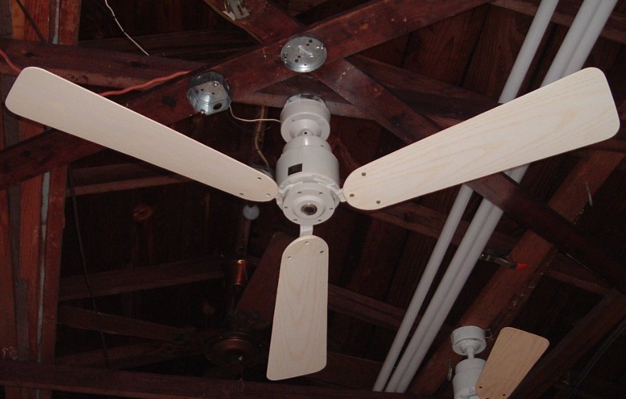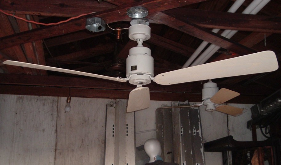 Emerson Heat-Fan ceiling fan a.k.a. Blender Fan. Cat. No. HF-352W. Made in the USA by the Emerson Electric Company. The blades are plastic. From the early 1980s. Manual is dated June of 1980. Single speed ceiling fan, unless a separate variable speed wall control is purchased. Down below shows the Emerson control SW81 which is one of the models that are for these ceiling fans. J-Hook is used to mount. Great ceiling fan for it's day. These are die hard ceiling fans and will out last new ceiling fans. |