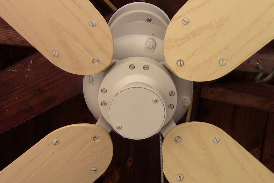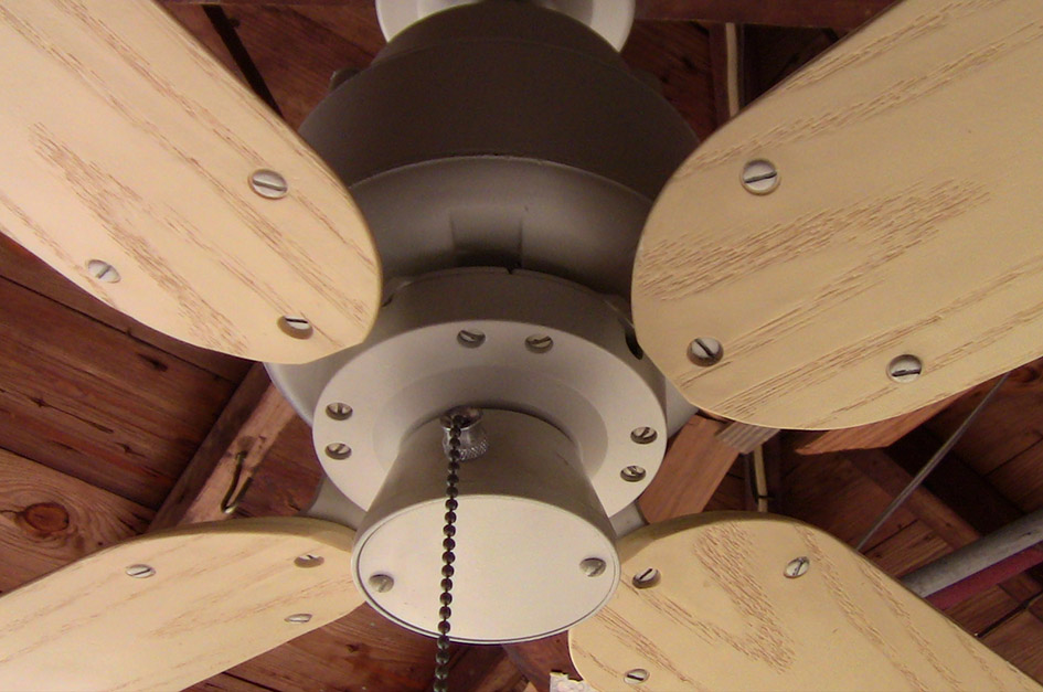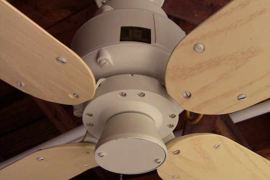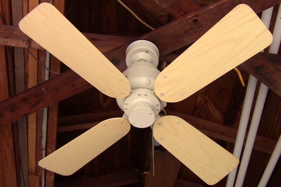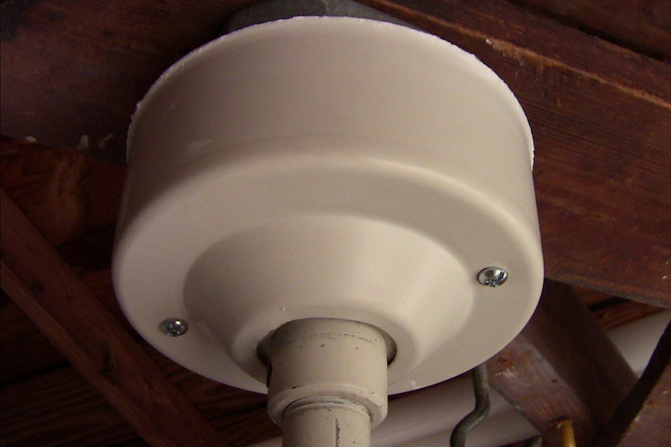 Emerson Universal Series / Heatfan ceiling fan a.k.a. Blender Fan. Cat. No. CF363WA. The 36 inch version with plastic blades. The plastic has yellowed over the years. Great ceiling fan for it's day. This ceiling fan is dated 5-7-80. Has a two speed pullswitch, fast/off/slow/off, and is light kit adaptable. J-Hook is used to mount. These are die hard ceiling fans and will out last new ceiling fans. Alot of cases with these fans, is the oil can capacitor starts failing which in most cases, causes the blades to stop moving. Any of these capacitors can be replaced with a modern box style capacitor as long as it's rated at the same value as the original. |