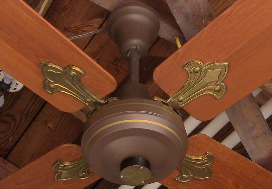 Crompton Greaves, Encon Industries ceiling fan model 1200mm from the late 1970s, early 1980s. Four metal blade ornate brass model and the reversible model. These types of ceiling fans are called the "High Breeze". Made in Bombay, India by Crompton Greaves, Sold and distributed by Encon. Sold with a five speed wall control. Speeds 1-2-3-4-On, On being the highest speed, and 1 being the lowest speed. J-Hook is used to mount this ceiling fan to ceiling. A rare version. |
