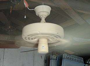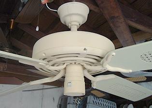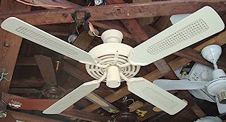 Model E-8. This ceiling fan is known as the Banana Fan by ceiling fan collectors, due to the shape of the vent holes. This model has a spinner motor. Evergo manufactured this fans with a few different motor types. |