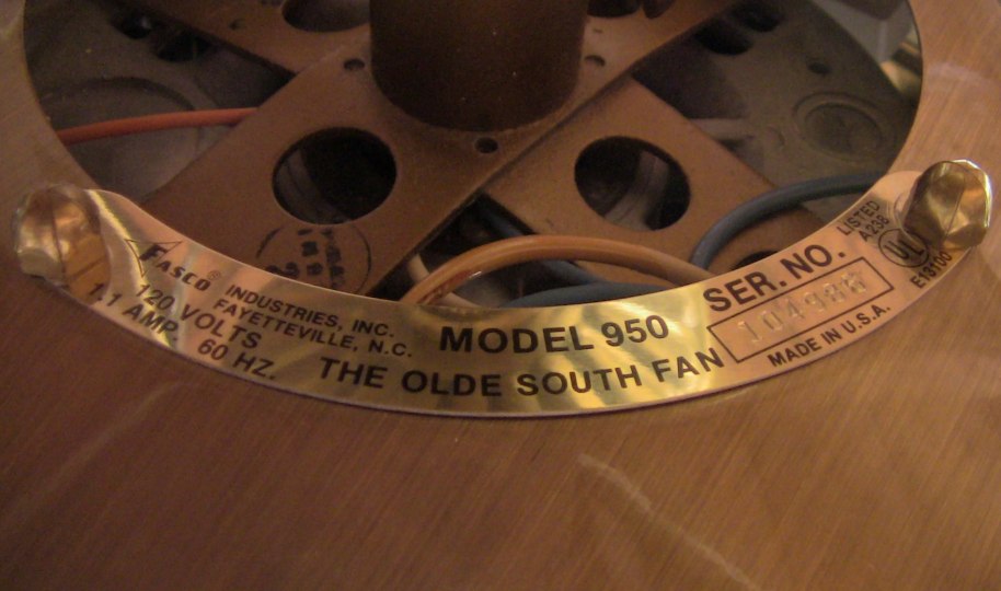 Fasco Olde South Ceiling Fan Model 950 CB Information |