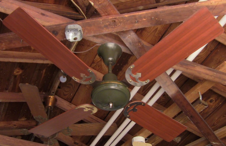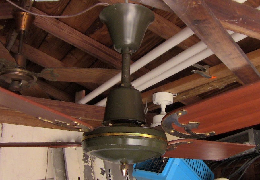 Golden Fan Electric MFG. FTY. CO. LTD. 48 inch ceiling fan model 178 from the late 1970s to early 1980s. Was sold with a five speed wall control. Uses a J-Hook to mount. This fan is light kit adaptable. These are quite popular ceiling fans, but are now becoming extinct. Great ceiling fan for it's day, and is built to last. |