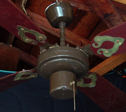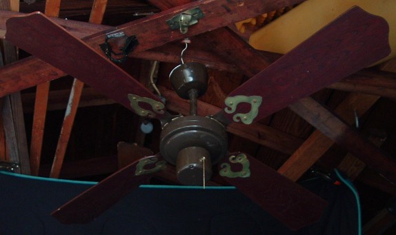 Martronic ceiling fan model 666. This fan is from the early to mid 1980s. Has a three speed pull chain. Resembles a NuTone Spinner. Neat Fan!! |