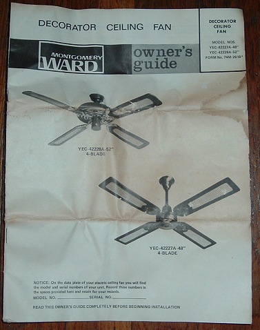 Vintage Montgomery Ward Ceiling Fans Model 4E-3LW