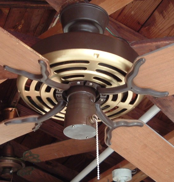 This Ceiling Fan. Evergo made many variations of styles and motor types of this fan. This ceiling fan is known as the Banana Fan by ceiling fan collectors, due to the shape of the vent holes. This ceiling fan has a on/off - variable speed pull chain. Uses the J Hook mounting system. This fan is very rare now. Neat fan!! |