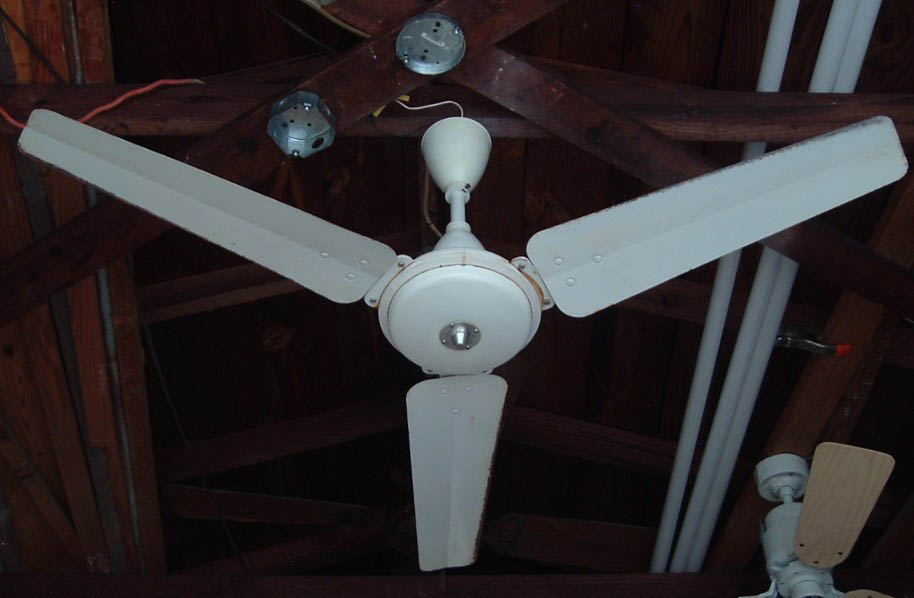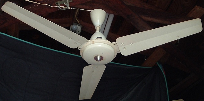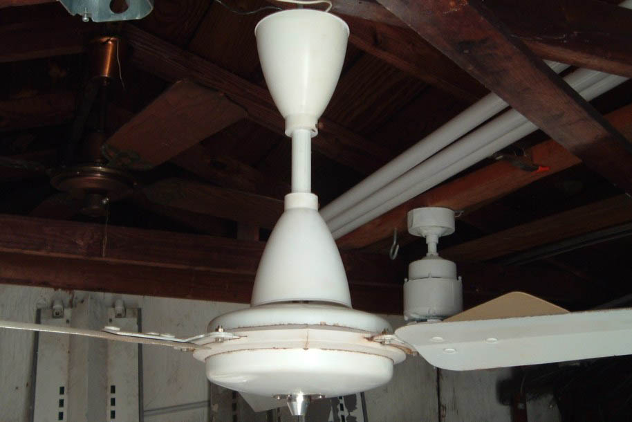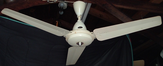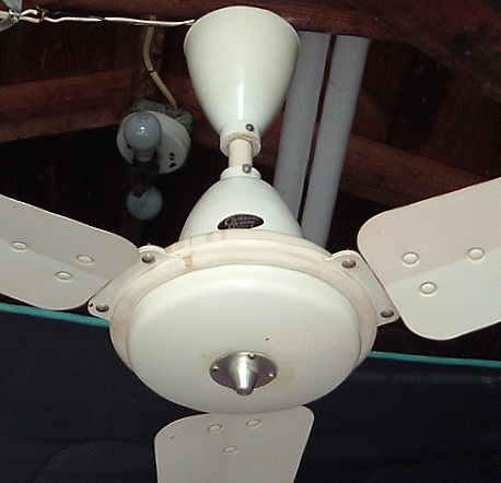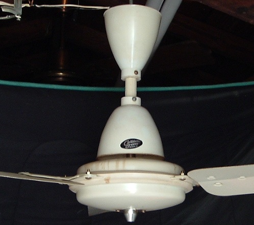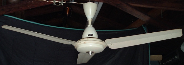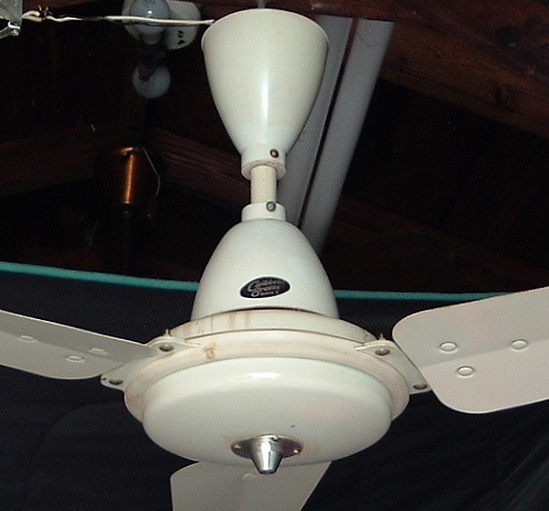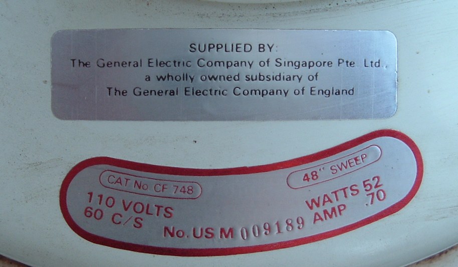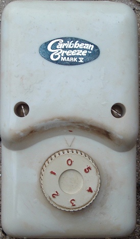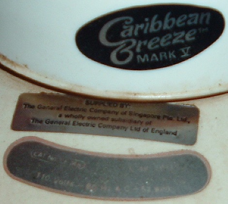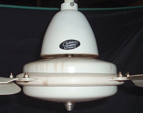 Moss Caribbean Breeze Mark V first generation ceiling fans Cat. No. CF 748. From the year 1978. These were the prototype. These ceiling fans were sold with a five speed wall control. They were made by GE of Singapore, not the same GE of the USA. Was sold and distributed by Moss Manufacturing out of Miami Florida back in the late 1970s, these were originally an exclusive item for Linsdley Lumber Company of Miami FL. These were the first Moss Caribbean Breeze ceiling fans, before they were replaced with the second ones made from Taiwan. Unlike most ceiling fans which the blades mount on top or bottom of motor, the blades mount on the side. These fans were made very different from any ceiling fan. Neat fan!! |