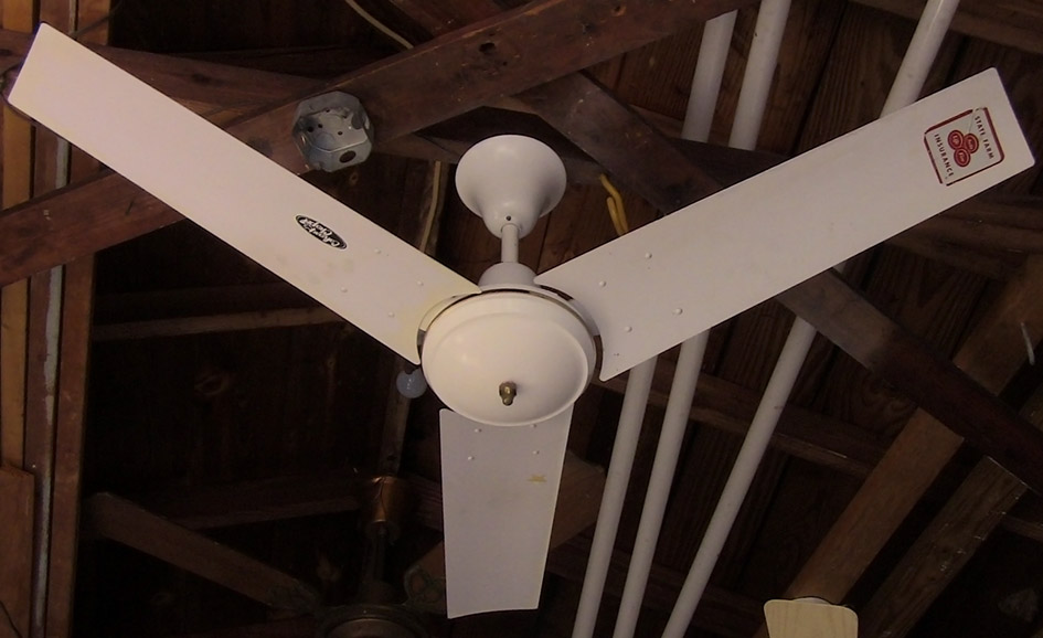 Moss Tropical Breeze 48 inch metal blade ceiling fans model TF-348 (TF Series) manufactured for Moss manufacturing in Hong Kong by New Fan manufactory LTD. New Fan manufacturer model number is N-101 C48. From the early 1980s. One of these ceiling fans has two model numbers, the New fan factory model numbers, and the Moss model number. Some of them don't include a Moss label but they are the same exact fan. Sold with a five speed wall control. They are light kit adaptable as extra wires were included. J-Hook is used to mount. One is Dated 6/16/82. |
