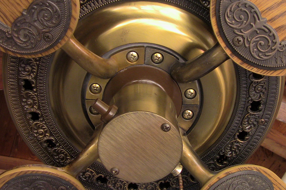 Sears Turn of The Century ceiling fan model 453.106900 By Lasko for Sears Roebuck and Co. Made in Japan. Ornate model of the Japanese made version of these ceiling fans. From the early 1980s. This ceiling fan has a on/off pull switch, and a variable speed control. Also has a forward/reverse switch on the top part of the motor housing. Uses ball and socket braket mounting and is light kit adaptable. Neat Fan!! |