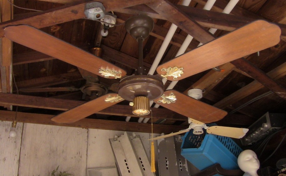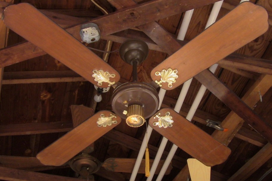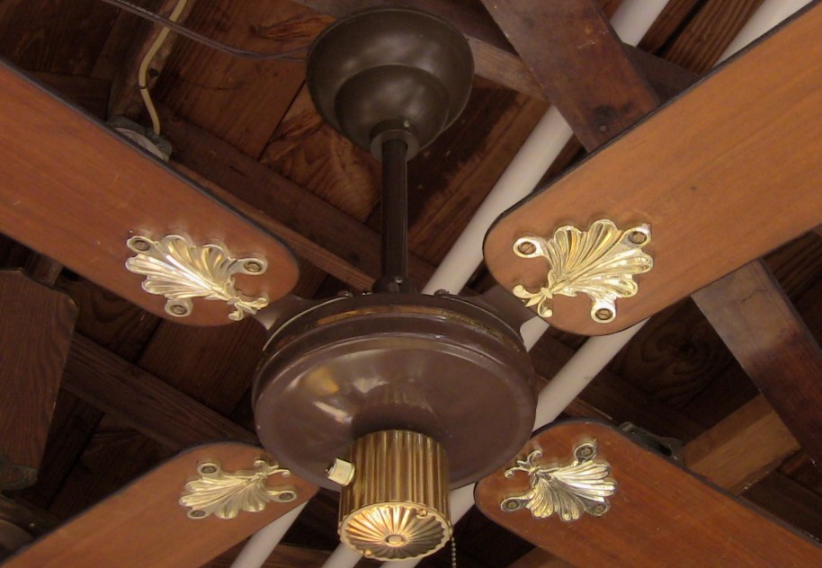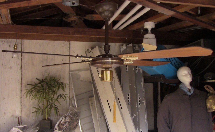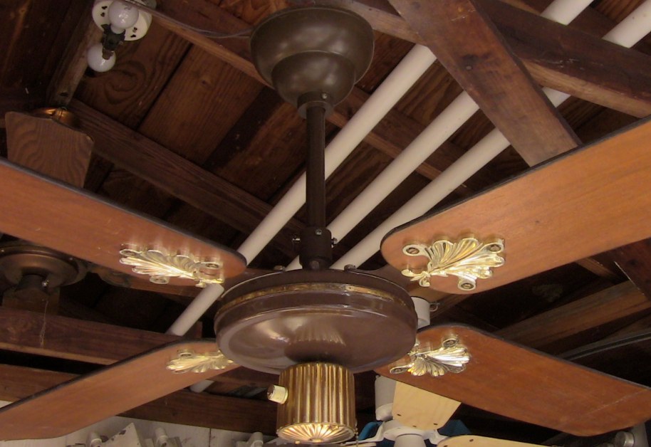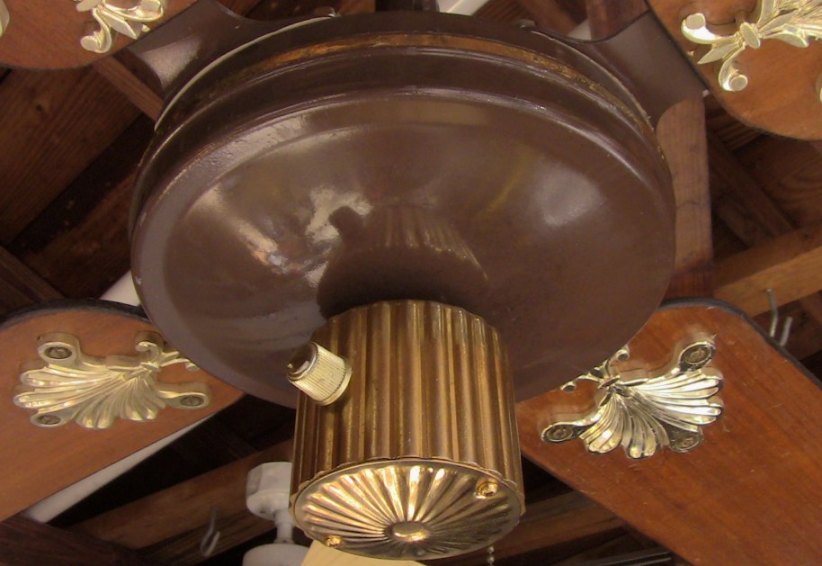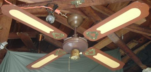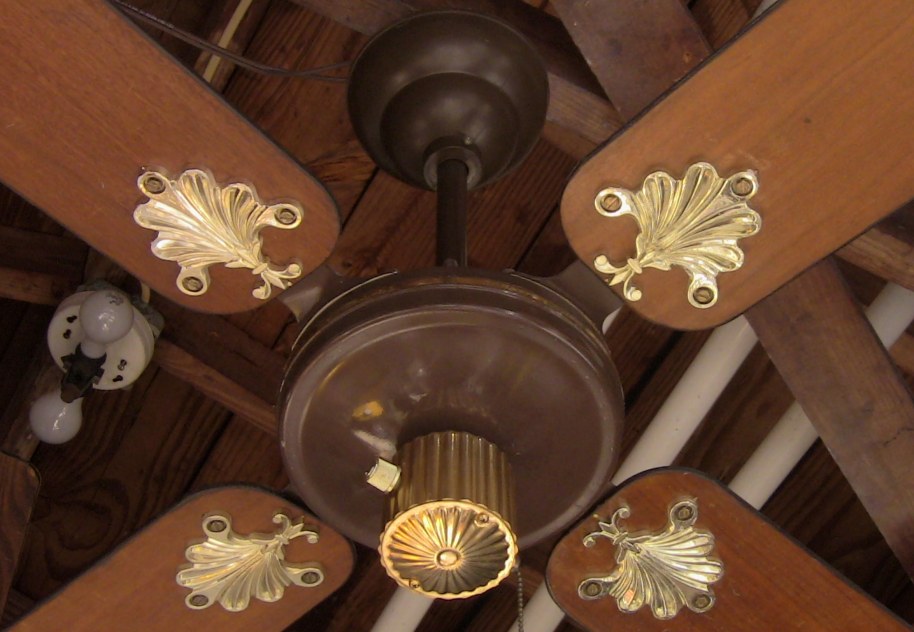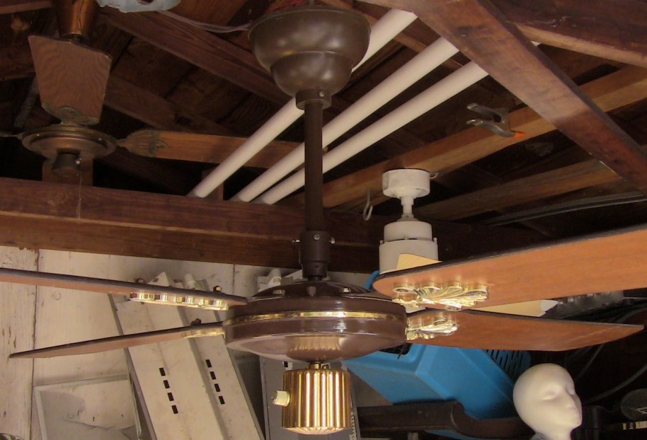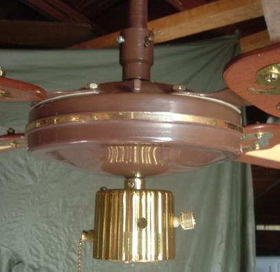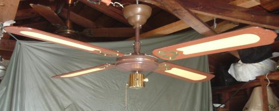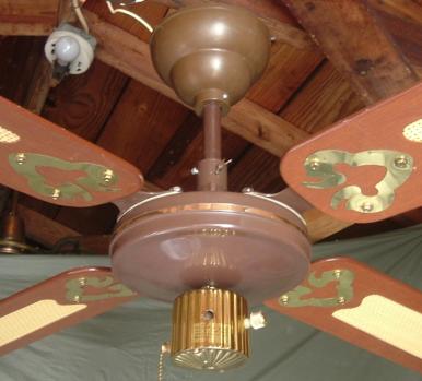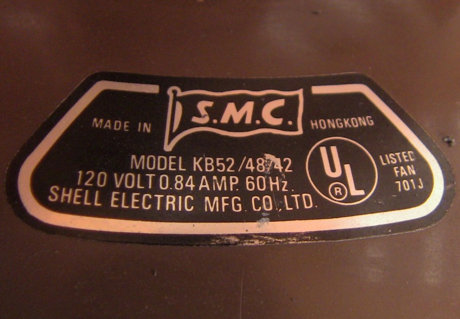 S.M.C. Laguna ceiling fans model KB52/48/42. These ceiling fans are from the early 1980s. 1983-84 era. Fan one has a forward/reverse/on/off pull switch and a variable speed control. Plain wood colored blades with the plastic shell shaped badges, which they eventually went to the metal versions, as seen on fan two cane blades. Fan two has a two speed - forward/reverse pull switch and a variable speed control that works with both speeds on the pull switch. The switch housing is metal on these ceiling fans. These ceiling fans are quite durable and heavy and made to last. S.M.C. did some minor changes to the 52 inch Laguna ceiling fans, without giving them a different model number. J Hook mounting with a plastic two piece canopy are used with these ceiling fans. Classic ceiling fans. |