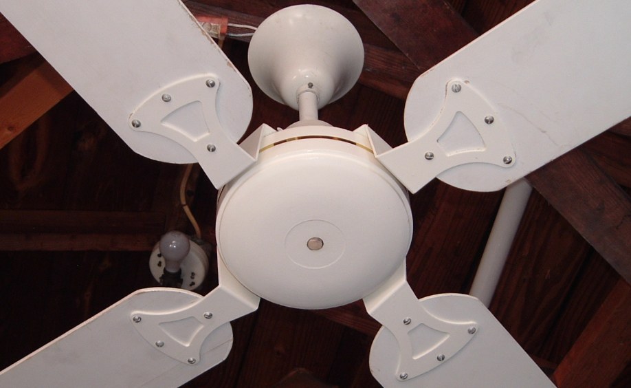 1970s ceiling fans made in Hong Kong. Factory, distributor information is unknown. These ceiling fans are from the 1970s, posibly ealry 1980s. These ceiling fans were sold with a wall speed control. J-Hook is used to mount these ceiling fans. Very odd blade mounting brackets. Very durable ceiling fans that are quite heavy. |