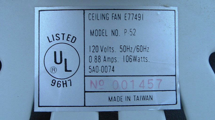 Unknown Hunter Original replica ceiling fan model P-52. Made in Taiwan. This ceiling fan was manufactured in the mid-late 1980s. Replica of the